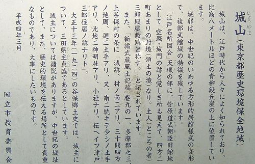 くにたち郷土文化館に戻り、ハケ上の道を東へ進むと、ハケ下に城山公園があります。