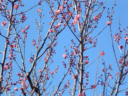 谷保天神の梅林は、まだまだですが、白梅・紅梅と芽吹いていました。