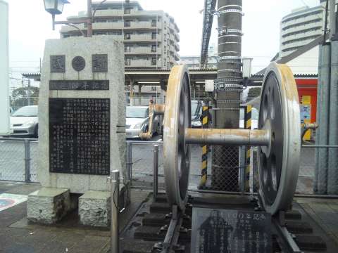 (駅前の鉄道100年記念です。)