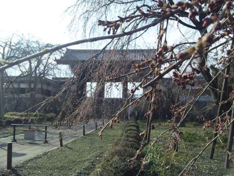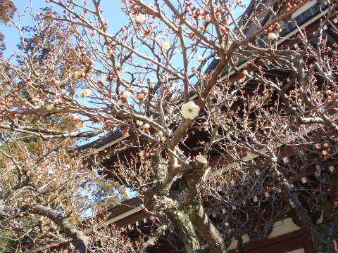 仏殿脇に開花し始めた梅を見れた。