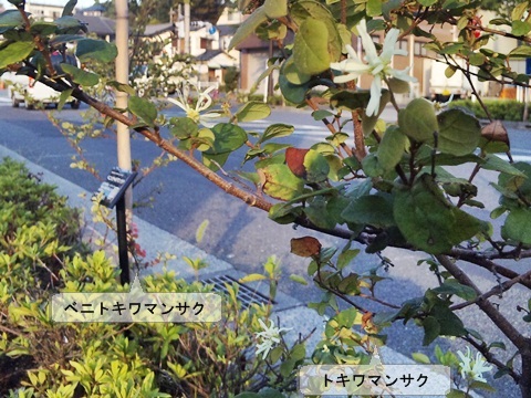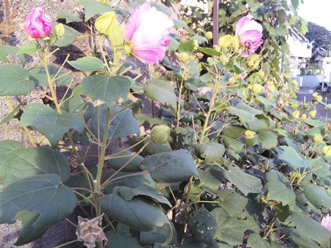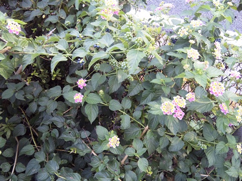 ピンクと青の花が咲いていた。